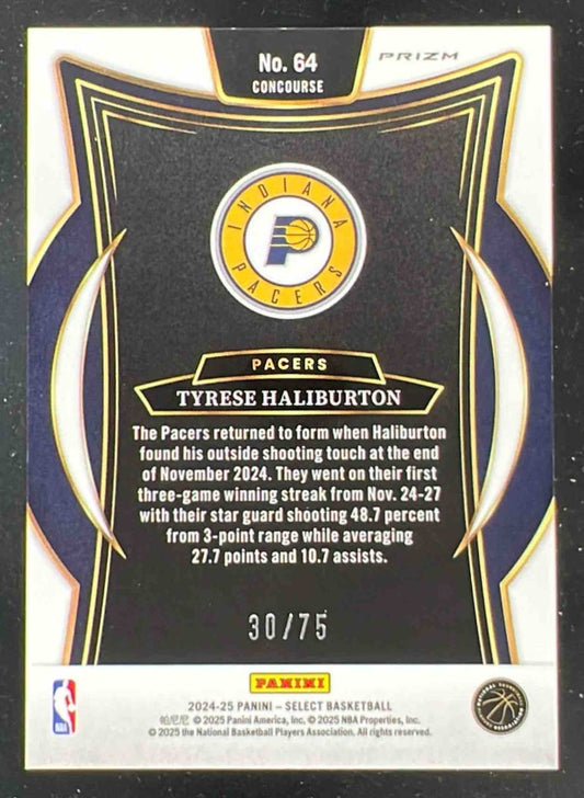 2024-25 Panini Select Concourse White Disco Prizm #64 Tyrese Haliburton /75