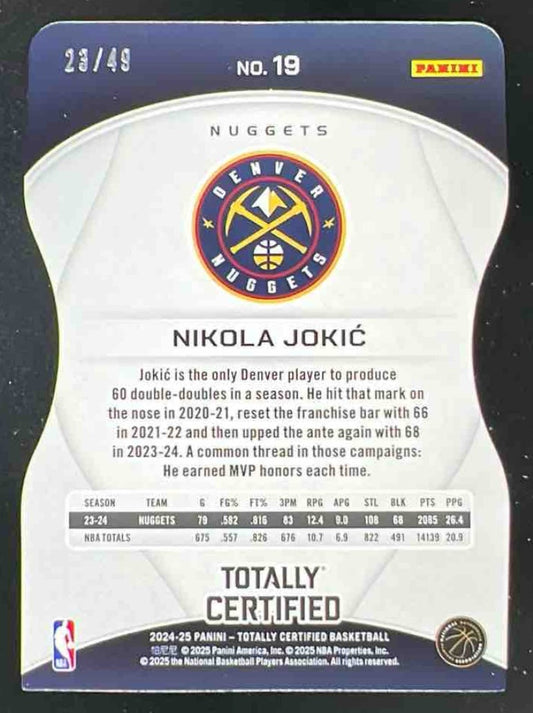 2024-25 Totally Certified Purple Die-Cut Platinum Mirror #19 Nikola Jokic /49