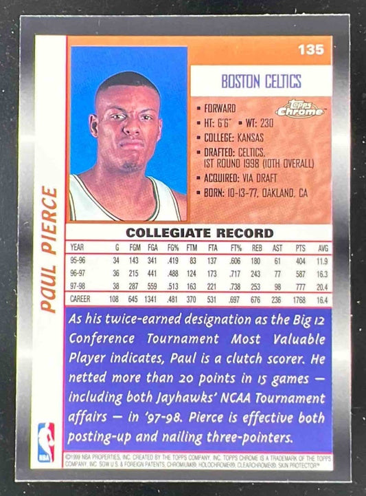 Uitverkocht1998-99 Topps Chrome #135 Paul Pierce RC