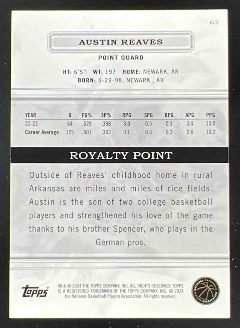2023-24 Topps Royalty Collection Blue #63 Austin Reaves /25