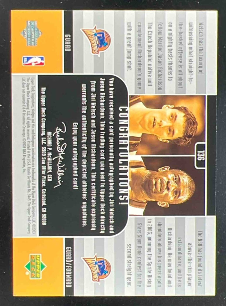 2002-03 Upper Deck Inspirations #136 Jiri Welsch Jason Richardson RC Auto /1600